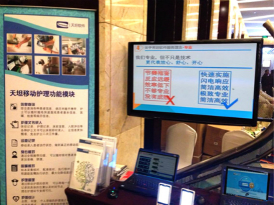 展會(huì)期間我公司接待了觀展及參展人員數(shù)百人,眾多人員關(guān)切詢問(wèn)我公司產(chǎn)品,本次展會(huì)我公司展出了天坦移動(dòng)護(hù)理系統(tǒng),天坦移動(dòng)查房系統(tǒng),及醫(yī)療大數(shù)據(jù)分析平臺(tái),通過(guò)現(xiàn)場(chǎng)演示受到了眾多專業(yè)人士和媒體的高度關(guān)注,尤其是天坦移動(dòng)護(hù)理系統(tǒng)吸引了眾多觀眾的眼球。