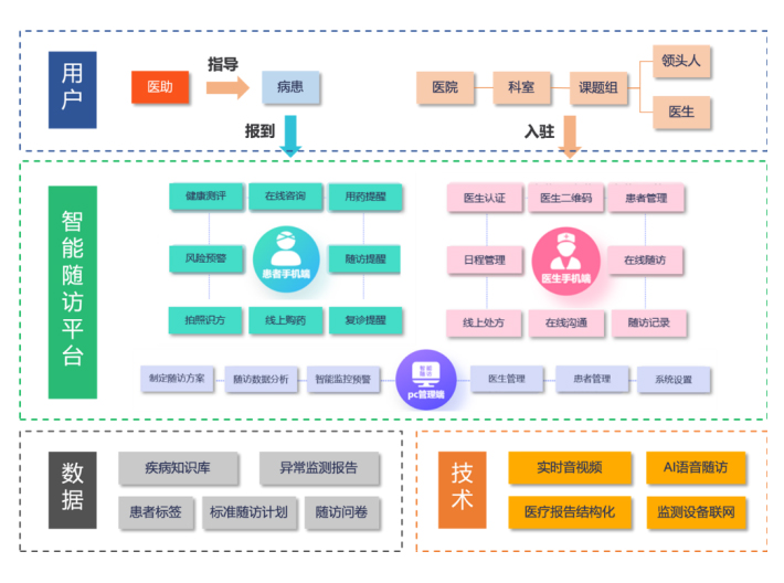 天坦智能開發(fā)的慢病管理運營服務是一套完整的心血管隨訪標準體系,配合適用性極強的醫(yī)生端可配置界面,滿足絕大多數(shù)開展冠心病介入的醫(yī)療機構(gòu)需求,同時,基于專家隨訪團隊之間的協(xié)作,建立上下聯(lián)動的醫(yī)生互動機制,為隨訪的患者提供專業(yè)的管理方案。匹配有人工智能為核心的隨訪管理機制,可自動化發(fā)送患者所需要信息,量表等隨訪內(nèi)容,具備機器學習功能,針對不同醫(yī)院形成不同模式的隨訪系統(tǒng)配置,匹配個性化的醫(yī)院隨訪體系,最終以患者交流平臺,建立以患者需求為中心的線上服務體系,包括專家線上咨詢、藥品直送、可穿戴式設備居家監(jiān)護、護理居家康復及圍繞手術全周期的保險支付產(chǎn)品。形成以醫(yī)學+智能+個性化+支付功能為一體的新一代的慢病管理平臺。