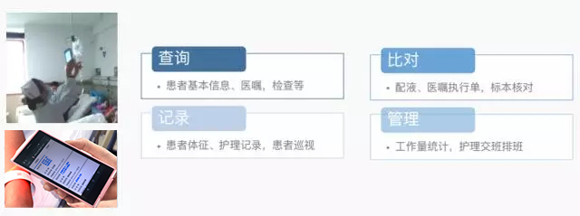 醫(yī)院的護士在日常操作中,每個環(huán)節(jié)都通過移動護士去記錄。在此過程中,移動護士會將護士的記錄工作,加上一些系統(tǒng)限制。如護士檢查患者的輸液信息,現(xiàn)階段大多是通過人工去核對,而使用移動護士,可以直接掃碼核對。同時,移動護士會強制要求患者的輸液瓶簽和患者腕帶之間一一對應(yīng),這就相當于增加了一個自動化的識別判斷,讓更換過程又快又準。